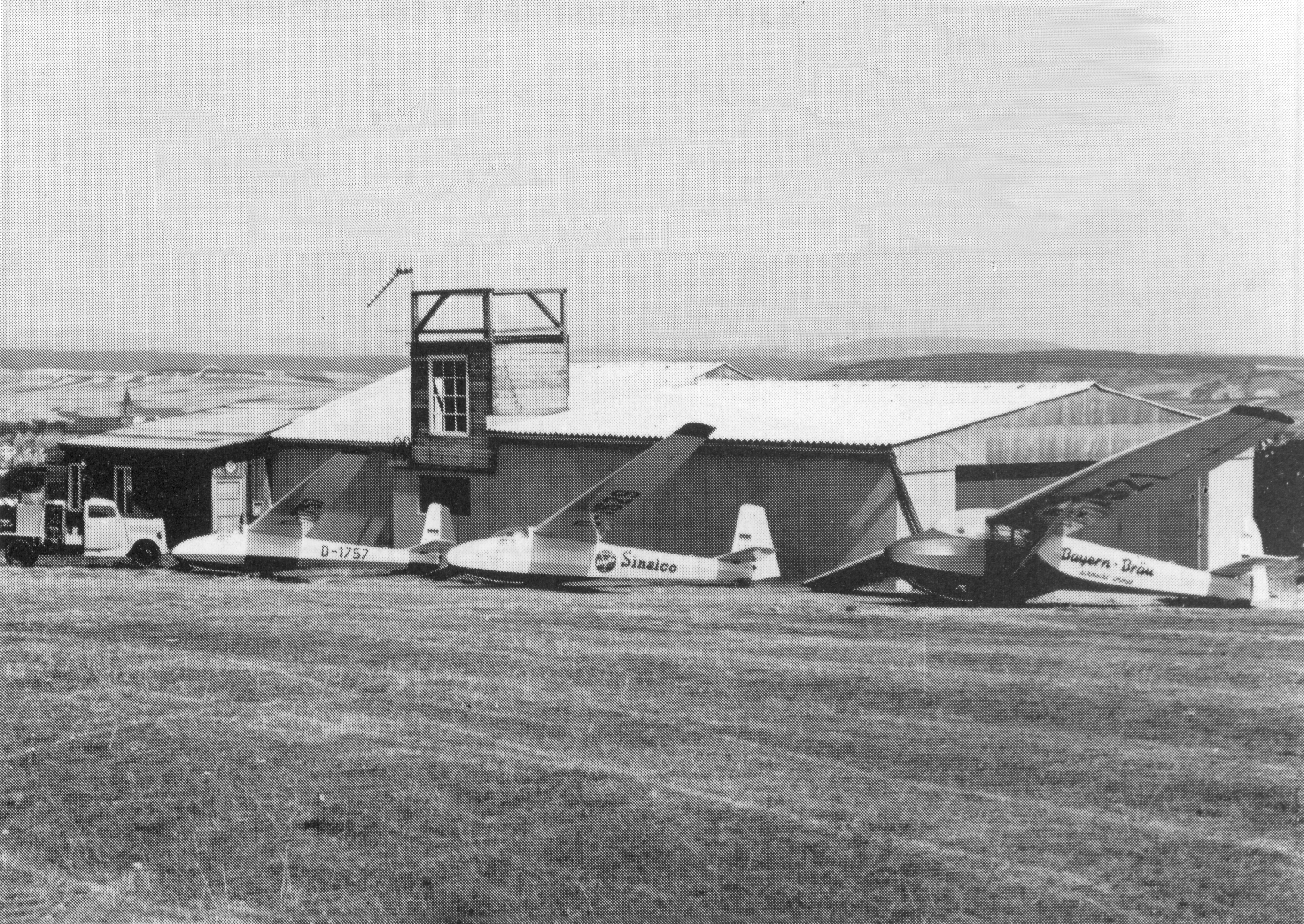 die Flugschule. Der kleine Turm ist auch wieder entfernt worden.